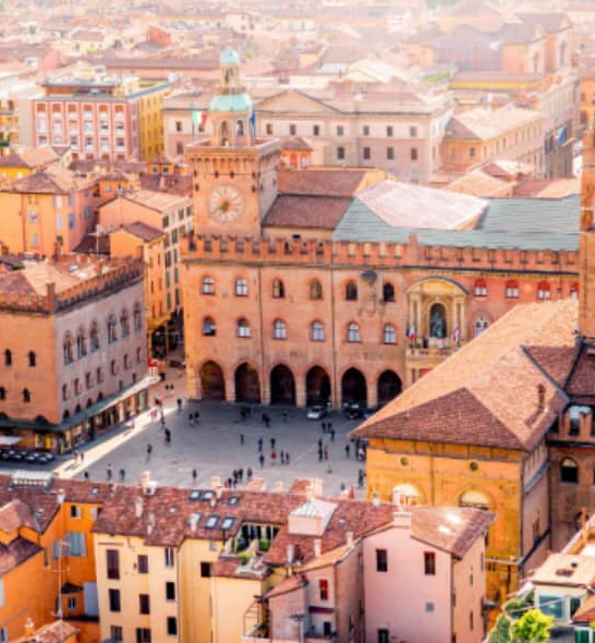 Prima città universitaria d'Europa, artefice di un grande sviluppo in epoca comunale, importante nel Rinascimento ma meno famosa rispetto ad altre "Corti", Bologna presenta una straordinaria unità nel suo centro storico. In anni recenti la città è stata oggetto di un intenso dibattito sul problema della conservazione degli antichi nuclei urbani. Le piazze, i portici, le strade, ospitano un'intensa vita culturale e commerciale; i monumenti e i musei illustrano proficuamente la storia dell'arte italiana dal Medioevo al Rinascimento. Uniamo alla sua scoperta alcuni piccoli e medi centri dell’area che degrada sulla pianura padana, scegliendoli tra i meno conosciuti e, anche per questo, più interessanti.